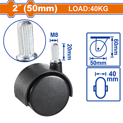 WJL6352 - دولاب بلاستيك 2 انش حمل 40 كغ كبس برغي 8 مم بدون فرام WADFOW