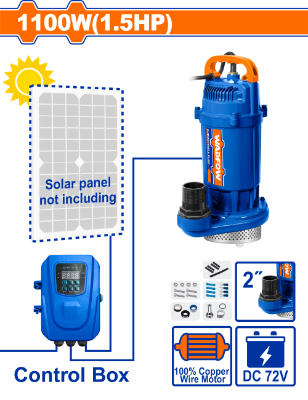 WWPQDC04 - قاذورة 1100 واط 1.5حصان تعمل على الطاقة الشمسية مع انفيرتر بدون الواح فتحة 2 انش رفع 36 متر غزارة 16 متر مكعب بالساعة مع كبل 10 متر ماركة WADFOW ملف نحاس